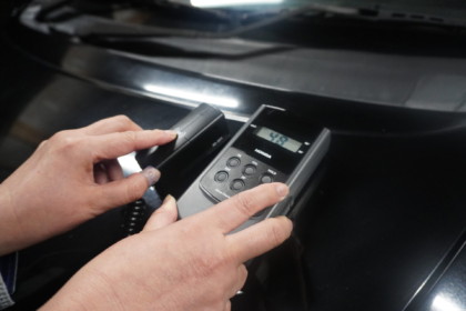 光沢計を使用して、車のボディの輝きを数値で表すことができます。光沢計は、ボディ表面の輝きを測定し、数値化する機器です。新車の光沢度は約80%程度とされており、ガラスコーティングを施した車は新車同様の光沢を取り戻すことができます。
